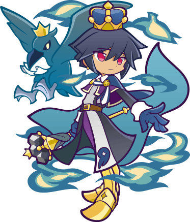 The reigning sovereign of a certain kingdom who, as a consequence of wielding the Cane of Arrogance, suffers the "Curse of Perceiving Others As Crows".Leader skill: The Kingly Puyojustu Sorcerer